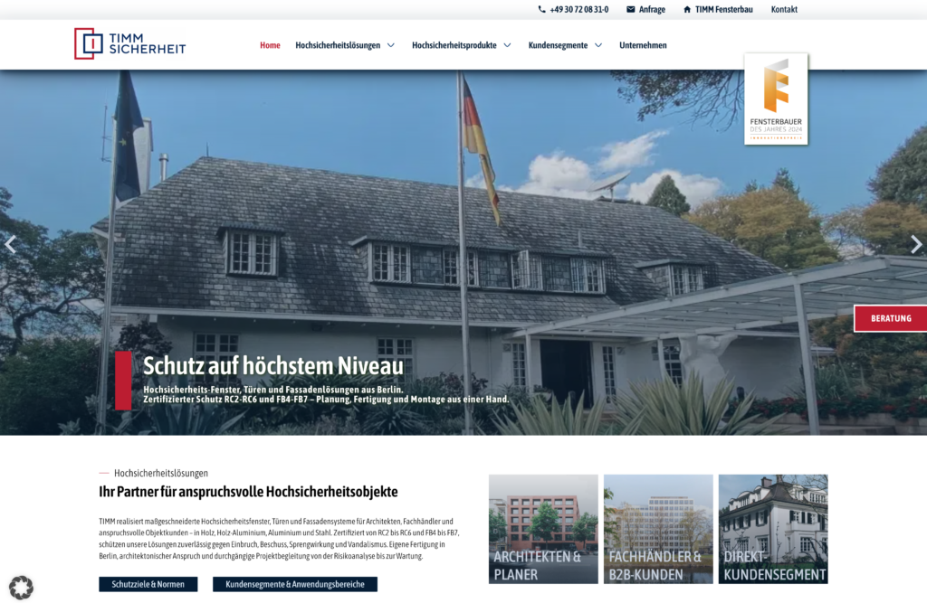 Das zweite Problem ist struktureller Natur: Hochsicherheit funktioniert anders als Standardfensterbau. Während bei einem normalen Fenster Ästhetik, U-Wert und Preis die Kaufentscheidung bestimmen, geht es bei Hochsicherheit um Risikoanalyse, Systemprüfungen, Zonenkonzepte und Nachweisführung. Diese Komplexität passt nicht in die bestehende Website-Struktur eines klassischen Fensterbauers – sie würde die Hauptzielgruppe (Wohnbau, Denkmalschutz, Objektbau) verwirren und gleichzeitig die Sicherheitszielgruppe nicht erreichen.