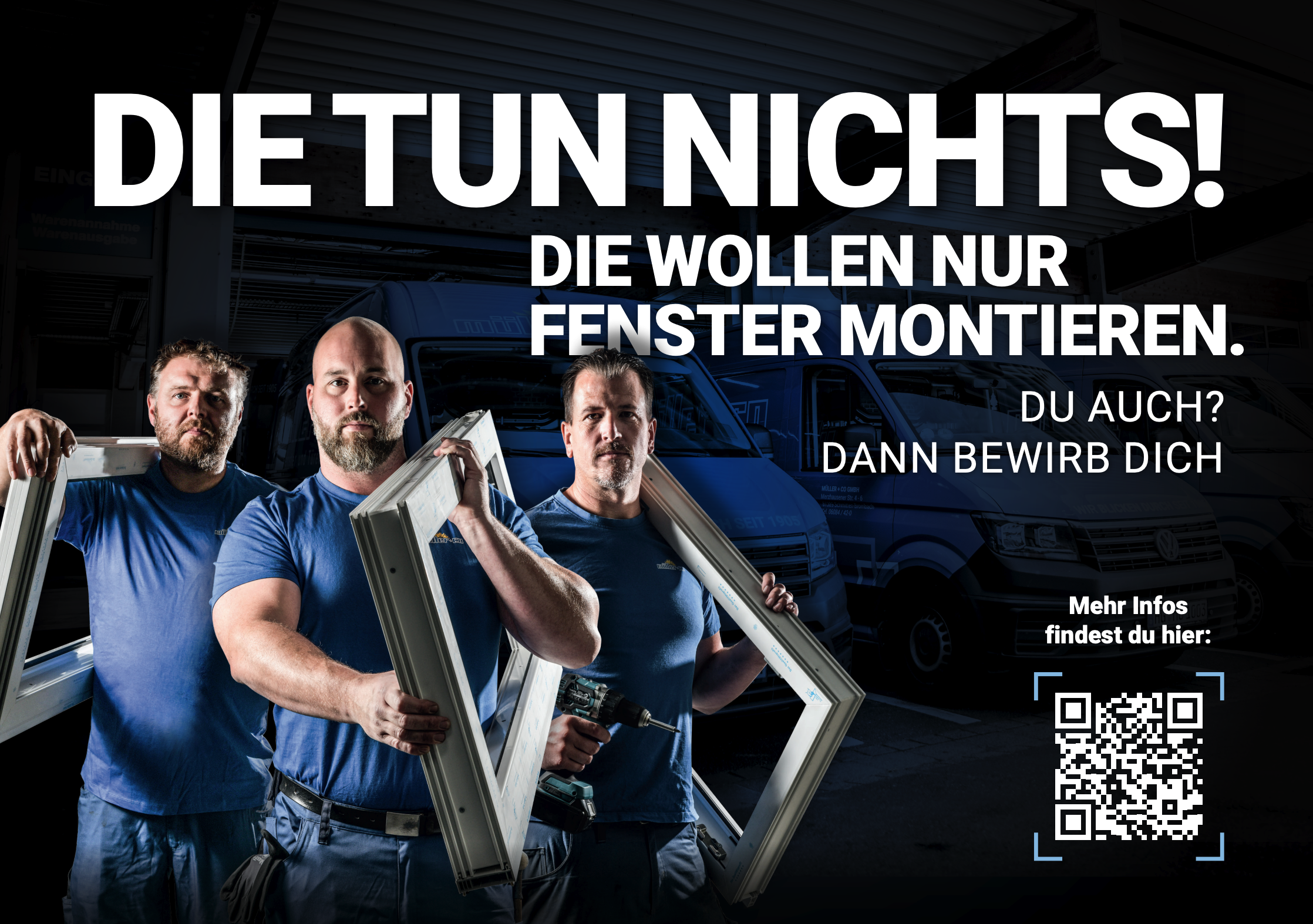 Mit der E-Recruiting-Kampagne „Bock auf Fenster“ haben wir eine aufmerksamkeitsstarke, crossmediale Maßnahme zur Gewinnung von Fachkräften im Montagebereich umgesetzt. Ziel war es, durch eine direkte, authentische Ansprache und eine starke Bildsprache Interesse zu wecken und Hemmschwellen im Bewerbungsprozess abzubauen.