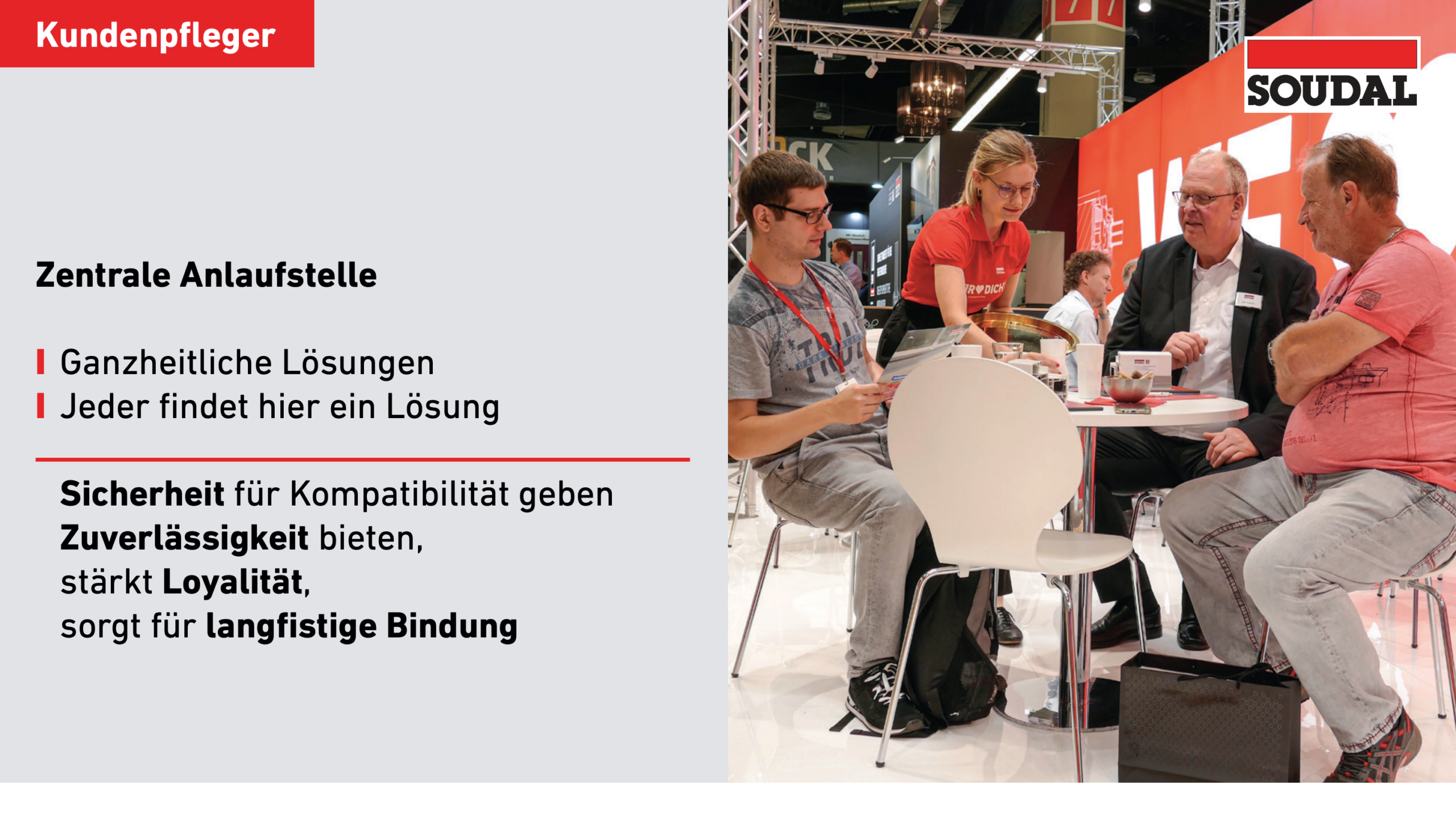 Der Soudal‑Stand wurde als lebendiger Treffpunkt wahrgenommen – als Ort, an dem Innovation, Systemkompetenz und persönliche Beziehungen zusammenkamen. [Soudal auf…ntale 2026 | Outlook], [004754-DES…au-2026_DE | PDF]